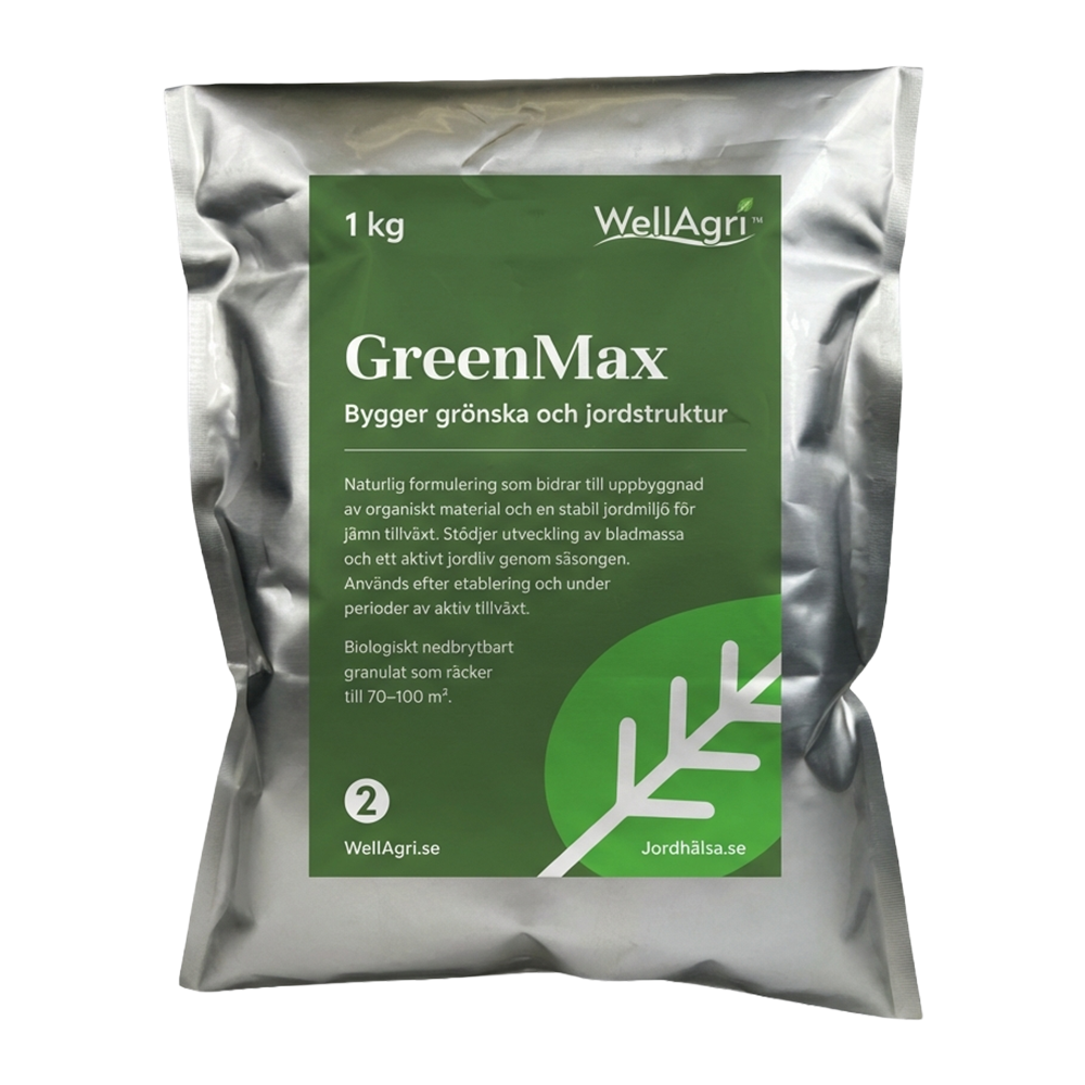 GreenMax hjälper dig att bygga upp jordens organiska innehåll och skapa en stabil miljö för tillväxt. Genom att stärka jordstruktur och fukthållning får växterna en jämn utveckling och en aktiv rotzon där näring och vatten hålls tillgängliga.