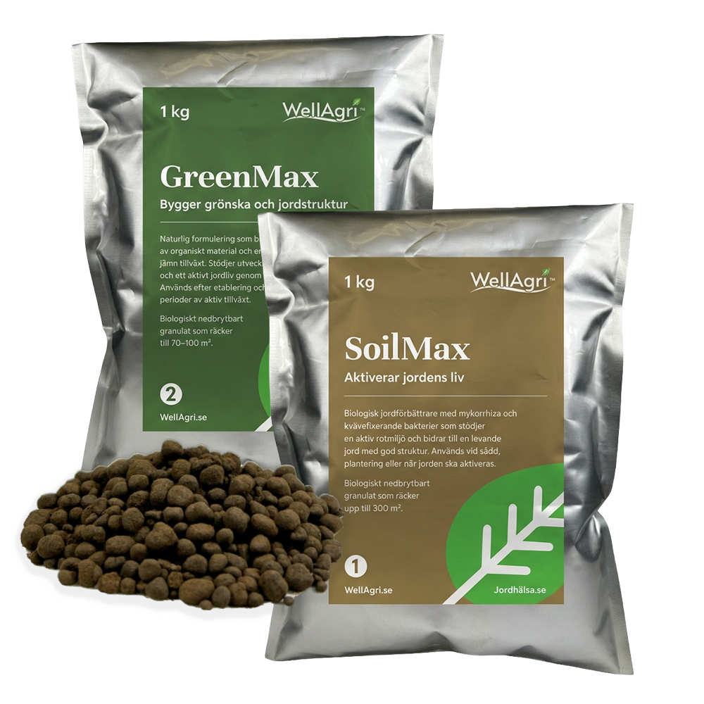 SoilMax stimulerar jordens biologiska aktivitet och aktiverar mikrolivet, medan GreenMax tillför naturlig näring och organiskt material som stödjer grön tillväxt och bidrar till bättre jordstruktur.